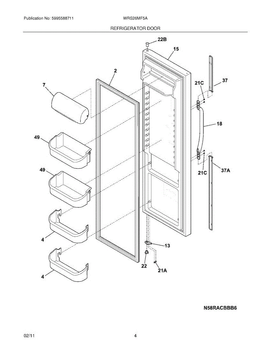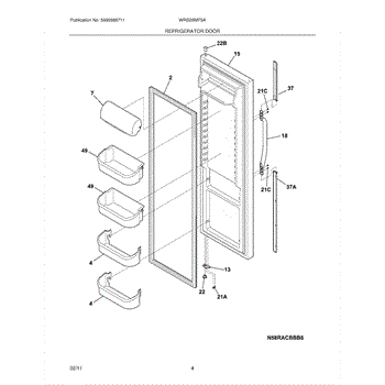 Replacement door bin for refrigerator interior storage. Installs on door to hold condiments and beverages. Replace if cracked, broken, or fallen off.