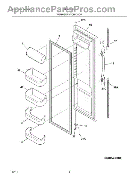 Door gasket seals refrigerator to keep cold air in and warm air out. Replace if torn, cracked, or not sealing properly. Confirm fit by model number.