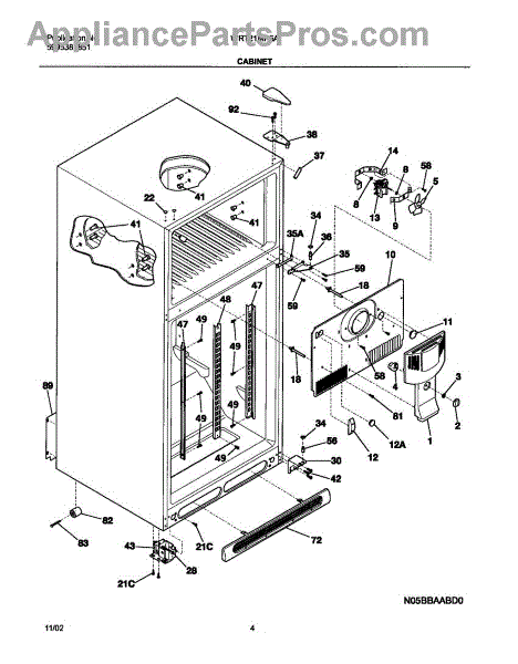 The Access Cover is an OEM replacement part for Frigidaire refrigerators. It serves as a protective barrier, covering the internal cooling system and wiring components.