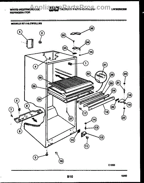 Parts for Frigidaire RT114LCW5: 03 - Cabinet Parts