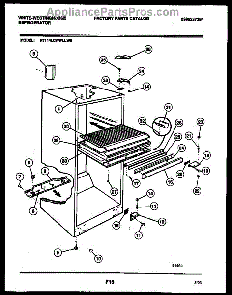 Lower hinge pin secures the refrigerator door to the cabinet, acting as the pivot point. Replace if worn, damaged, or broken to restore smooth operation.