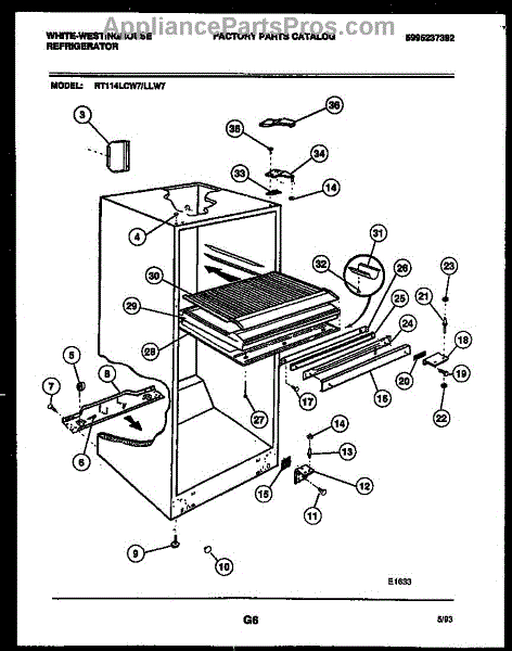 Lower hinge pin secures the refrigerator door to the cabinet, acting as the pivot point. Replace if worn, damaged, or broken to restore smooth operation.
