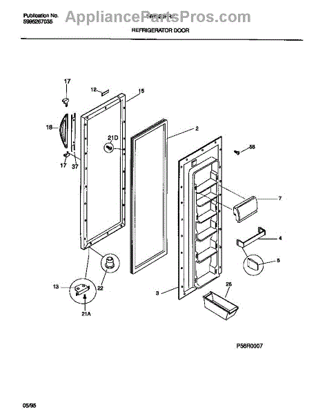 The Door Shelf Support is an OEM part for Frigidaire refrigerators, designed to hold and support the shelves on the inside of the refrigerator door. This part ensures that door shelves are securely mounted, providing stable storage for bottles, condiments, and other items.