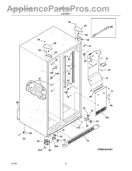 This plug covers the small factory test opening on an appliance cabinet or liner. Replacing a missing or damaged plug helps close the opening to maintain a better seal and restore a clean, finished appearance.