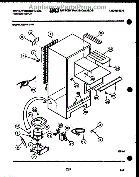 This is a compressor used in several types of home appliances. The compressor is designed to take cold gas in the appliance and place it under pressure so the gas raises in temperature. It is then moved through the refrigerator system to ensure the unit stays cold throughout the appliance. This part can become damaged or malfunction, which may cause the motor to stop running, make the motor noisier, or cause the motor to never stop running.If this happens, the compressor will need to be replaced. A basic set of tools will be needed. A pair of work gloves can also be useful. First, locate the compressor as it may be in various locations depending on the appliance model. Unplug the appliance before removing the compressor. Install the new compressor using the original bolts and nuts before turning the power back on and resuming normal use.This part is sold on an individual basis. The compressor is made to be used with refrigerators, ranges, stoves, ovens, air conditioners, and freezers created by Gibson, Frigidaire, Kelvinator, Montgomery Wards, Westinghouse, Tappan, JCPenney, Universal, and Kenmore. It is an authentic OEM replacement part directly sourced from the manufacturer.