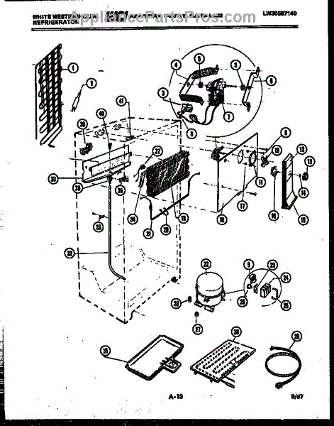 This is a compressor used in several types of home appliances. The compressor is designed to take cold gas in the appliance and place it under pressure so the gas raises in temperature. It is then moved through the refrigerator system to ensure the unit stays cold throughout the appliance. This part can become damaged or malfunction, which may cause the motor to stop running, make the motor noisier, or cause the motor to never stop running.If this happens, the compressor will need to be replaced. A basic set of tools will be needed. A pair of work gloves can also be useful. First, locate the compressor as it may be in various locations depending on the appliance model. Unplug the appliance before removing the compressor. Install the new compressor using the original bolts and nuts before turning the power back on and resuming normal use.This part is sold on an individual basis. The compressor is made to be used with refrigerators, ranges, stoves, ovens, air conditioners, and freezers created by Gibson, Frigidaire, Kelvinator, Montgomery Wards, Westinghouse, Tappan, JCPenney, Universal, and Kenmore. It is an authentic OEM replacement part directly sourced from the manufacturer.