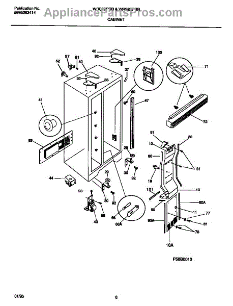 Almond cabinet corner trim piece for freezers. Replaces cracked, broken, or missing corner trim. Installs on exterior cabinet edges for a finished look.