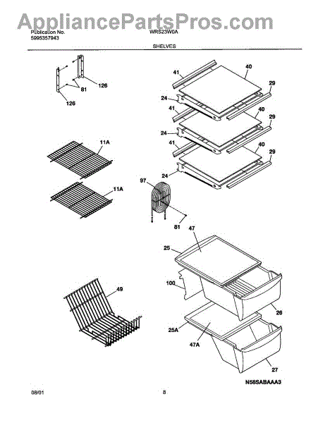 Replacement freezer shelf assembly restores a sturdy surface for food storage. Replace a cracked, broken, or missing shelf to recover capacity.