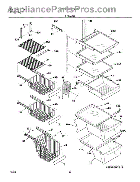 Parts for White Westinghouse WRS26MF5AS8: 09 - Shelves Parts
