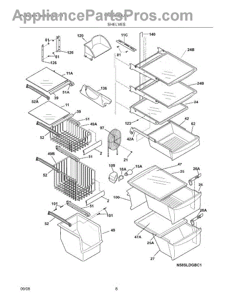 Over time, the glass shelf can become damaged due to heavy items being placed on it, accidental impacts, or thermal stress from temperature changes. Replacing a damaged shelf ensures safe and effective storage inside the refrigerator.