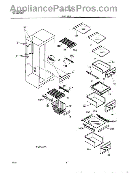 The Upper Crisper Pan is an OEM replacement part for Frigidaire refrigerators. Located on the slidable tracks inside fresh food section that holds the vegetables/produce. The pan measures about 16-1/2 inches wide by 8 inches high by 16 inches deep. The drawer front is not included for lower pan order 5303289501. Causes of a bad upper crisper pan may be cracks in plastic developing over extended use, stains that render it unsuitable for food contact, or warping from exposure to wet environments inside the crisper. Symptoms of a bad upper crisper pan include: