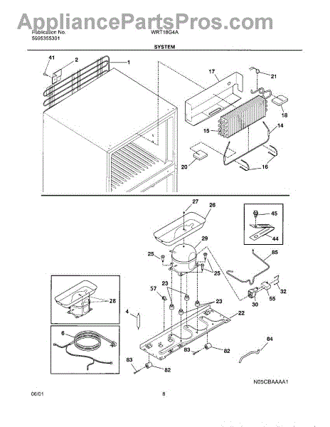 This drain trough directs defrost water from the evaporator to the refrigerator drain, helping prevent pooling, leaks and ice build-up in the fresh-food compartment. A correct trough keeps defrost water flowing and reduces odors or floor damage. What it does: