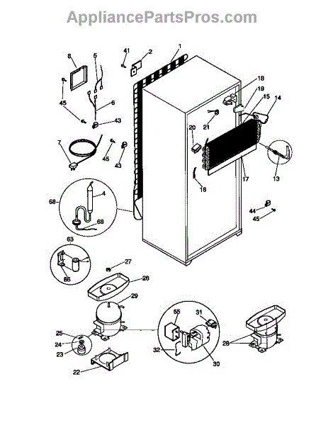 This is a compressor used in several types of home appliances. The compressor is designed to take cold gas in the appliance and place it under pressure so the gas raises in temperature. It is then moved through the refrigerator system to ensure the unit stays cold throughout the appliance. This part can become damaged or malfunction, which may cause the motor to stop running, make the motor noisier, or cause the motor to never stop running.If this happens, the compressor will need to be replaced. A basic set of tools will be needed. A pair of work gloves can also be useful. First, locate the compressor as it may be in various locations depending on the appliance model. Unplug the appliance before removing the compressor. Install the new compressor using the original bolts and nuts before turning the power back on and resuming normal use.This part is sold on an individual basis. The compressor is made to be used with refrigerators, ranges, stoves, ovens, air conditioners, and freezers created by Gibson, Frigidaire, Kelvinator, Montgomery Wards, Westinghouse, Tappan, JCPenney, Universal, and Kenmore. It is an authentic OEM replacement part directly sourced from the manufacturer.