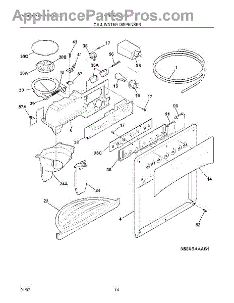 The Ice Chute Door Insulation is an OEM replacement part for Frigidaire refrigerators. It is installed on the ice chute door to prevent warm air infiltration and moisture buildup around the ice dispenser. Causes may include compression or cracking of insulating foam/material from normal use stress. Spills exposing it to liquid are also damaging. Symptoms of defective insulation consist of: