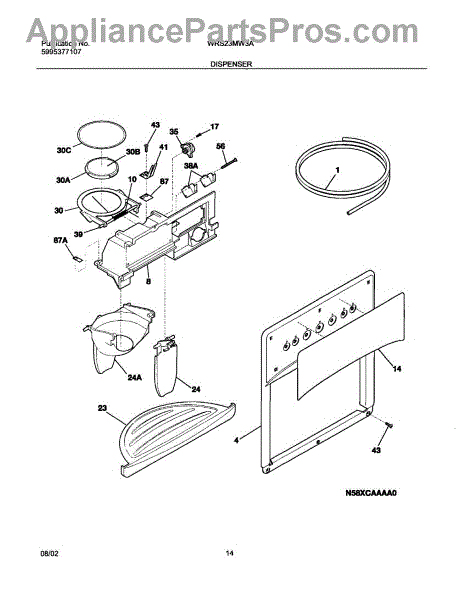 Parts for White Westinghouse WRS23MW3AQ4: 15 - Ice & Water Dispenser Parts