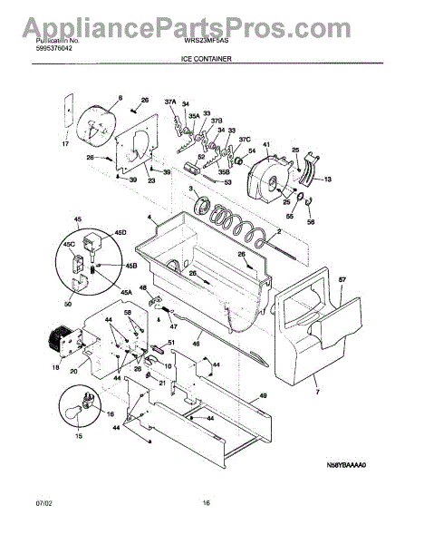 The Ice Container Assembly is an OEM replacement part for Frigidaire refrigerators. This component serves as the storage bin or receptacle for the ice produced by the icemaker, providing a convenient and accessible location for the ice.