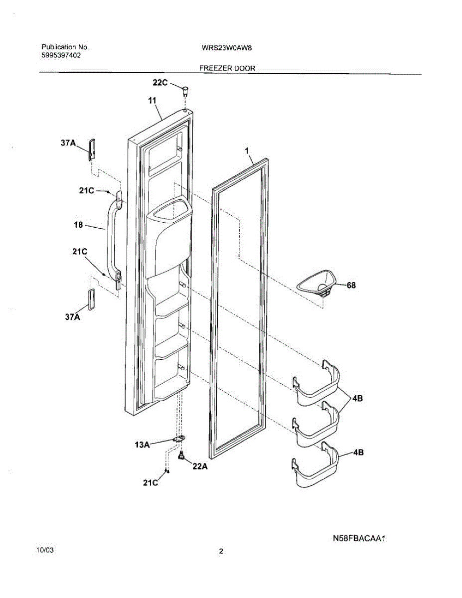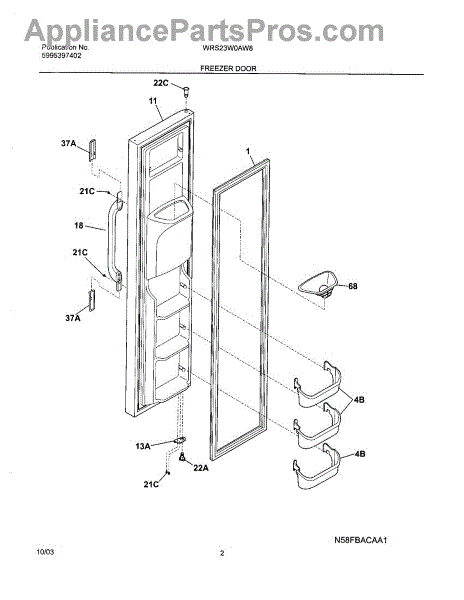Secures door handle trim to the refrigerator door. Replace if broken, cracked, or missing after impact. Clips into door trim and attaches to door.