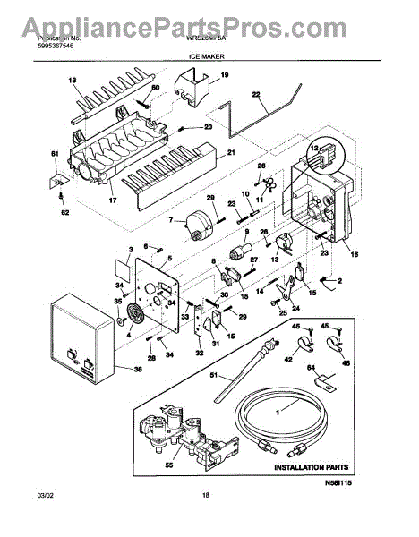 Replaces cracked, frozen, or leaking ice maker fill tube. Directs water from supply line into ice maker tray. Common replacement for damaged tubes.