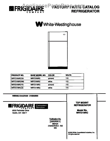 Parts for Frigidaire WRT21NRCY0: 01 - Cover Parts