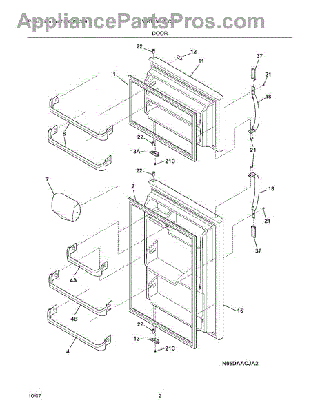 The Door Shelf Bar is an OEM part for Frigidaire refrigerators. This bar attaches to the door, providing a secure front barrier for door shelves to help hold items like bottles, jars, and condiments in place. It enhances the storage capacity and organization of the refrigerator door, ensuring that items do not fall out when the door is opened or closed.