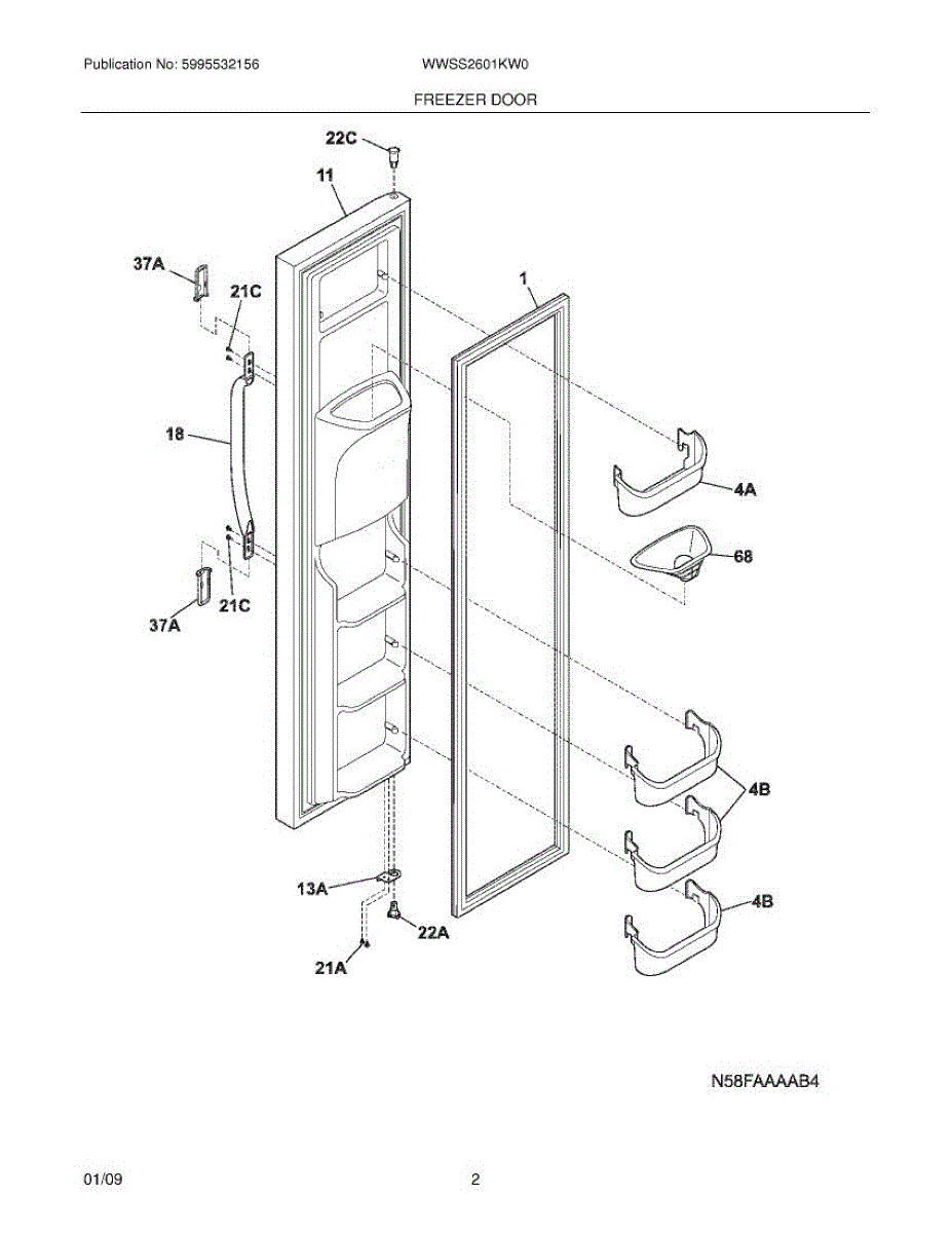 Parts for White Westinghouse WWSS2601KW0: 03 - Freezer Door Parts