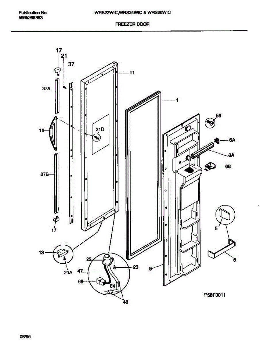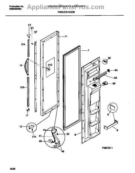 Refrigerator freezer door gasket seals cold air inside. Replace if worn, torn, or allowing air leaks. Confirm fit with your model number before ordering.