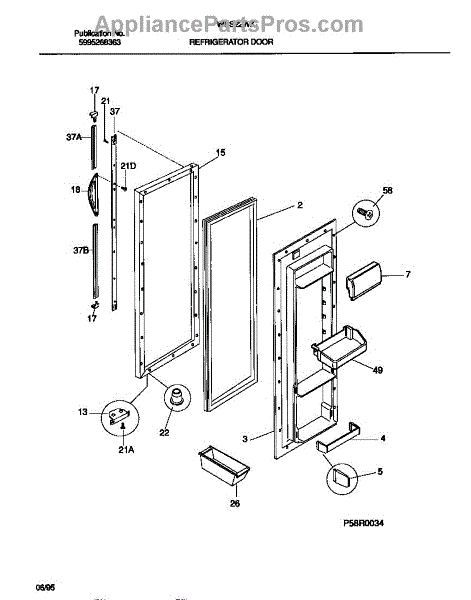 The Door Shelf Support is an OEM part for Frigidaire refrigerators, designed to hold and support the shelves on the inside of the refrigerator door. This part ensures that door shelves are securely mounted, providing stable storage for bottles, condiments, and other items.