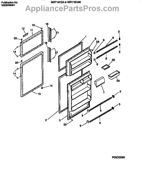 Egg container for refrigerator door storage. Replace if cracked, broken, or missing. Holds eggs securely in fridge door shelf compartment.