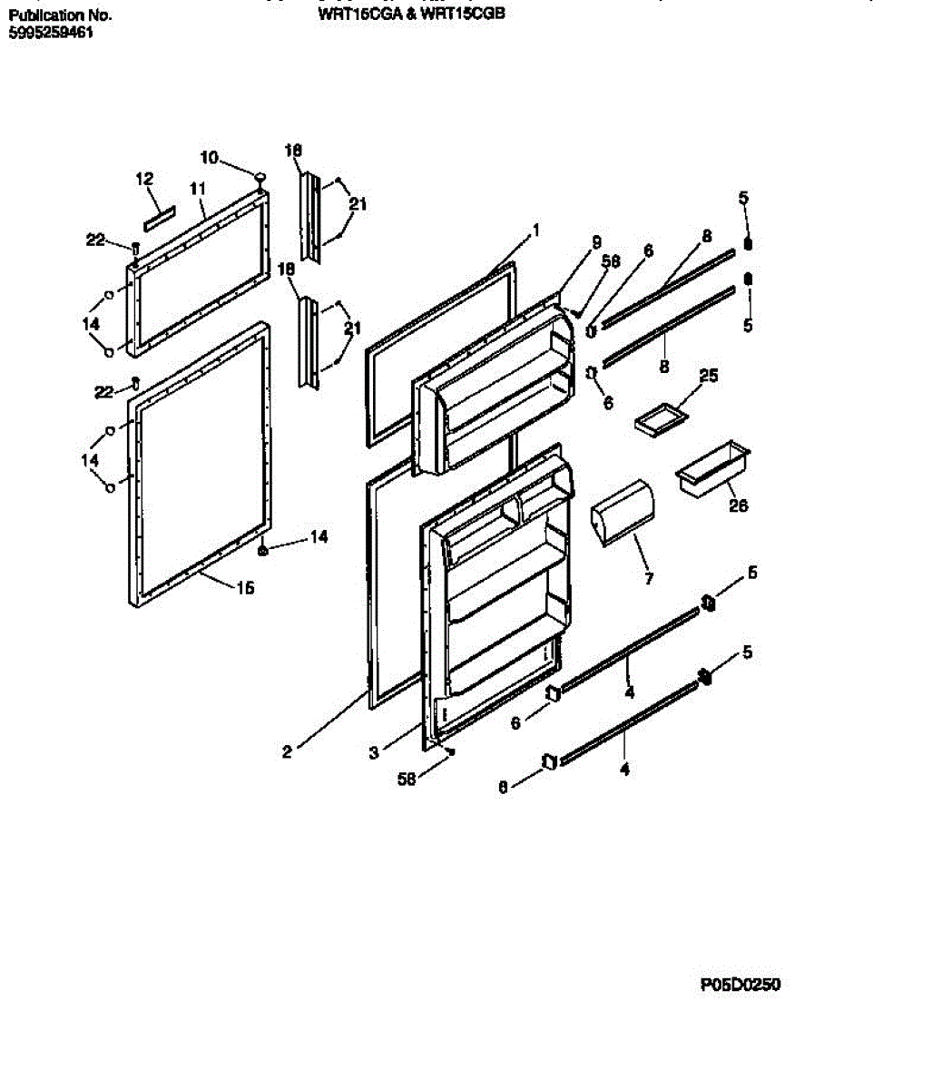 Inner door liner for refrigerator fresh food compartment. Replaces cracked, broken, or damaged liner panels. Attaches to interior door surface.