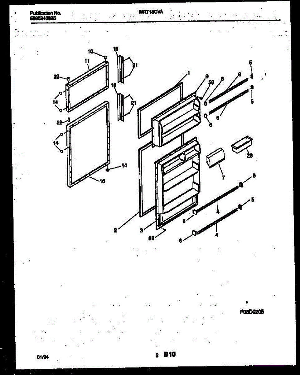 Egg container for refrigerator door storage. Replace if cracked, broken, or missing. Holds eggs securely in fridge door shelf compartment.
