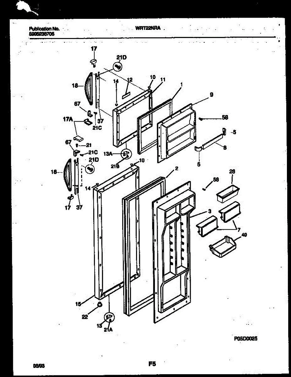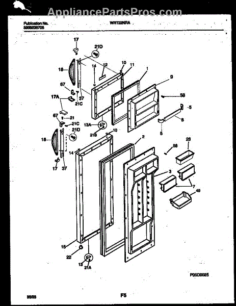 Egg container for refrigerator door storage. Replace if cracked, broken, or missing. Holds eggs securely in fridge door shelf compartment.