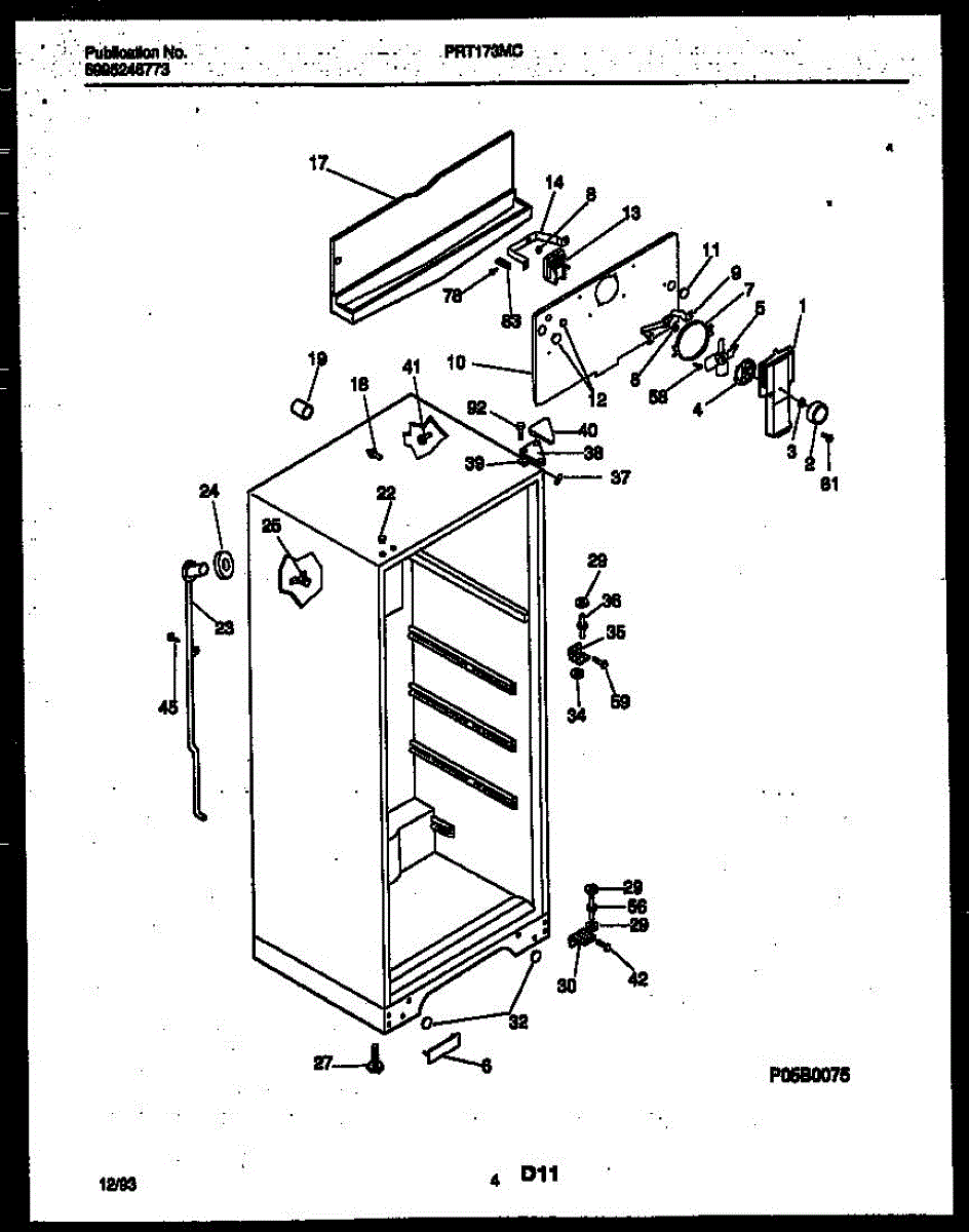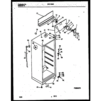 Rubber grommet cushions and seals freezer components, reducing vibration and preventing wear where wiring or rods pass through. Replace if cracked or worn.