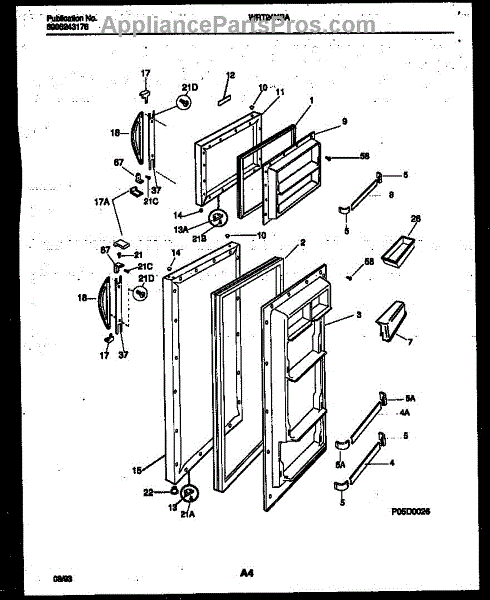 Freezer door stop installs on the cabinet to limit door travel and prevent damage. Replace if cracked, broken, or missing to protect your refrigerator.