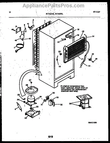This is a compressor used in several types of home appliances. The compressor is designed to take cold gas in the appliance and place it under pressure so the gas raises in temperature. It is then moved through the refrigerator system to ensure the unit stays cold throughout the appliance. This part can become damaged or malfunction, which may cause the motor to stop running, make the motor noisier, or cause the motor to never stop running.If this happens, the compressor will need to be replaced. A basic set of tools will be needed. A pair of work gloves can also be useful. First, locate the compressor as it may be in various locations depending on the appliance model. Unplug the appliance before removing the compressor. Install the new compressor using the original bolts and nuts before turning the power back on and resuming normal use.This part is sold on an individual basis. The compressor is made to be used with refrigerators, ranges, stoves, ovens, air conditioners, and freezers created by Gibson, Frigidaire, Kelvinator, Montgomery Wards, Westinghouse, Tappan, JCPenney, Universal, and Kenmore. It is an authentic OEM replacement part directly sourced from the manufacturer.