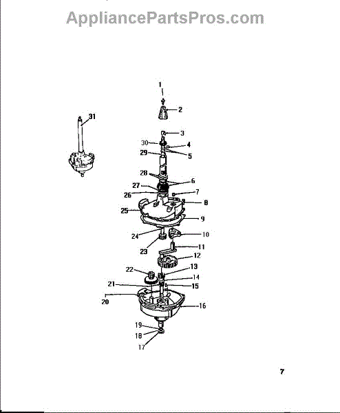 Agitator rod and gear kit for washers. Connects the agitator to the drive system. Replace if gears are stripped, worn, or rod is broken or damaged.