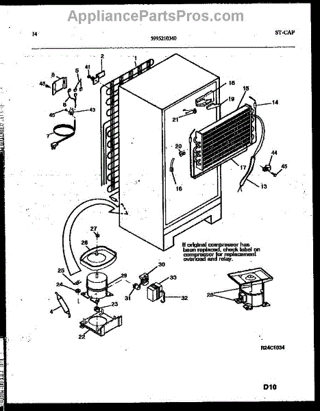 This is a compressor used in several types of home appliances. The compressor is designed to take cold gas in the appliance and place it under pressure so the gas raises in temperature. It is then moved through the refrigerator system to ensure the unit stays cold throughout the appliance. This part can become damaged or malfunction, which may cause the motor to stop running, make the motor noisier, or cause the motor to never stop running.If this happens, the compressor will need to be replaced. A basic set of tools will be needed. A pair of work gloves can also be useful. First, locate the compressor as it may be in various locations depending on the appliance model. Unplug the appliance before removing the compressor. Install the new compressor using the original bolts and nuts before turning the power back on and resuming normal use.This part is sold on an individual basis. The compressor is made to be used with refrigerators, ranges, stoves, ovens, air conditioners, and freezers created by Gibson, Frigidaire, Kelvinator, Montgomery Wards, Westinghouse, Tappan, JCPenney, Universal, and Kenmore. It is an authentic OEM replacement part directly sourced from the manufacturer.