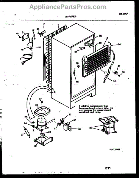 This is a compressor used in several types of home appliances. The compressor is designed to take cold gas in the appliance and place it under pressure so the gas raises in temperature. It is then moved through the refrigerator system to ensure the unit stays cold throughout the appliance. This part can become damaged or malfunction, which may cause the motor to stop running, make the motor noisier, or cause the motor to never stop running.If this happens, the compressor will need to be replaced. A basic set of tools will be needed. A pair of work gloves can also be useful. First, locate the compressor as it may be in various locations depending on the appliance model. Unplug the appliance before removing the compressor. Install the new compressor using the original bolts and nuts before turning the power back on and resuming normal use.This part is sold on an individual basis. The compressor is made to be used with refrigerators, ranges, stoves, ovens, air conditioners, and freezers created by Gibson, Frigidaire, Kelvinator, Montgomery Wards, Westinghouse, Tappan, JCPenney, Universal, and Kenmore. It is an authentic OEM replacement part directly sourced from the manufacturer.