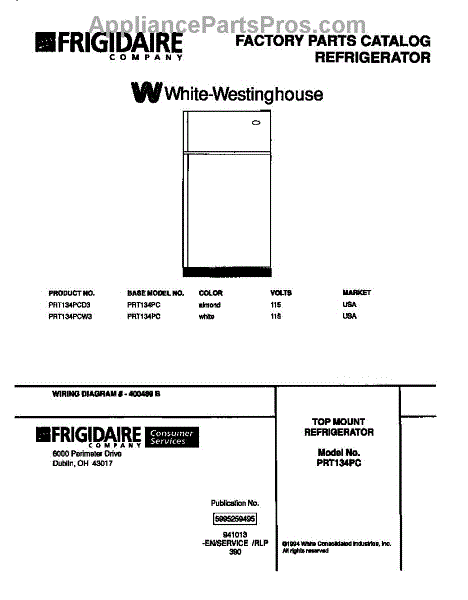 Parts for Frigidaire PRT134PCD3: 01 - Top Mount Refrigerator Parts