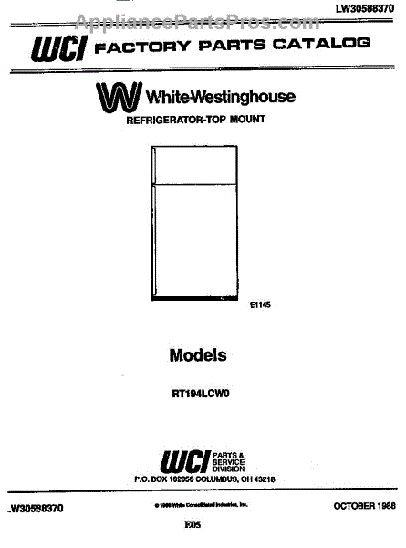 Parts for Frigidaire RT194LCFO: 01 - Cover Parts