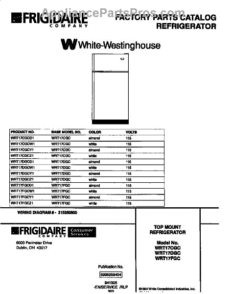 Parts for Frigidaire WRT17DGCZ1: 01 - Refrigerator Parts