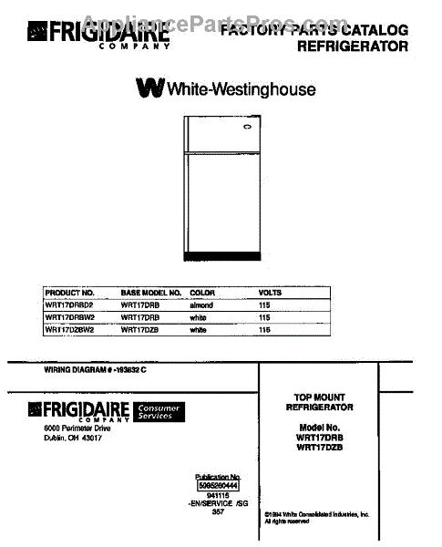 Parts for Frigidaire WRT17DZBW2: 01 - Top Mount Refrigerator Parts
