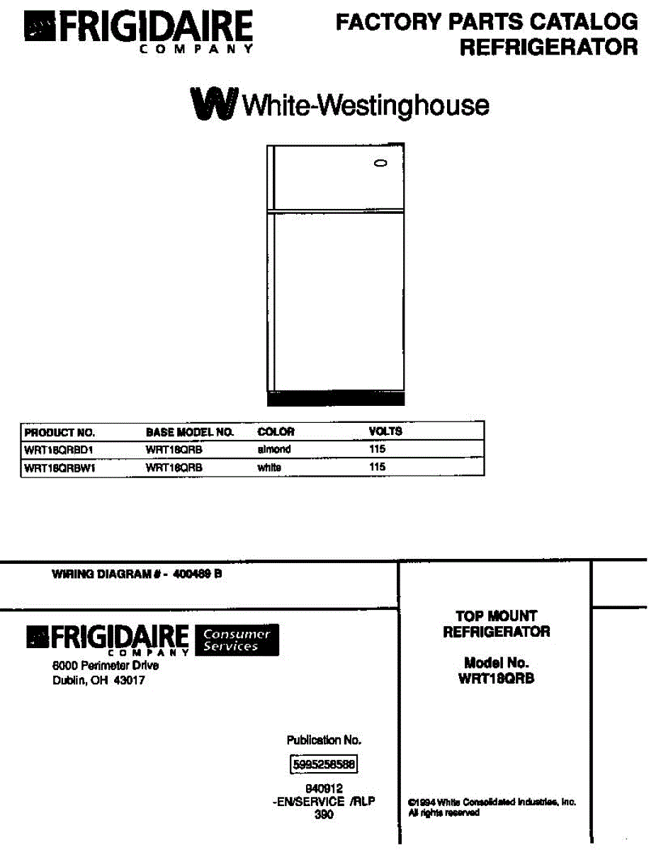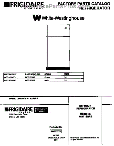 Parts for Frigidaire WRT18QRBD1: 01 - Top Mount Refrigerator Parts