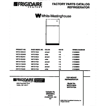 Parts for Frigidaire WRT21FGAW2: 01 - Top Mount Refrigerator Parts