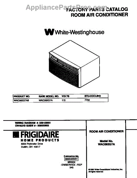 Parts for Frigidaire WAC082G7A8: 01 - Cover Parts