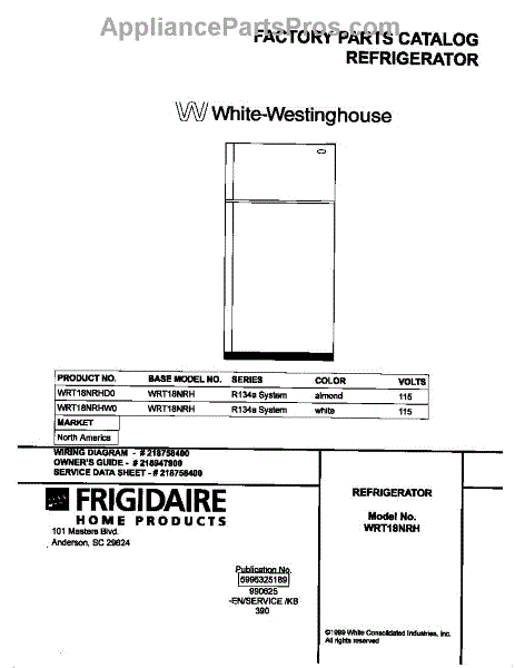 Parts for Frigidaire WRT18NRHD0: 01 - Cover Parts