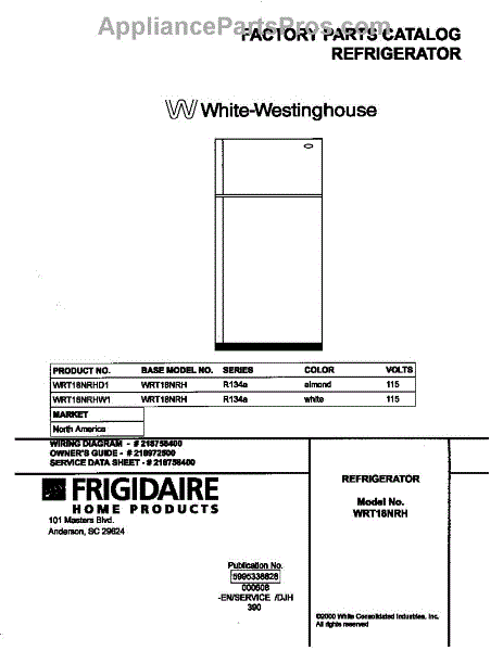 Parts for Frigidaire WRT18NRHD1: 01 - Cover Parts