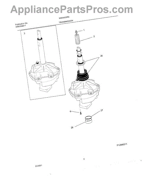 This replacement spacer positions the transmission bearing block to help maintain proper alignment and drivetrain spacing for reliable washer operation. It restores correct fit where worn or damaged spacers cause misalignment. What it does