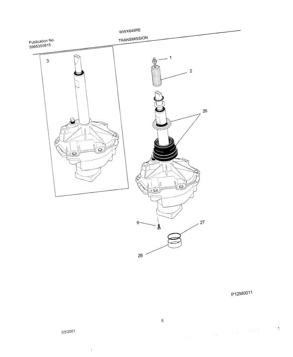 This replacement spacer positions the transmission bearing block to help maintain proper alignment and drivetrain spacing for reliable washer operation. It restores correct fit where worn or damaged spacers cause misalignment. What it does