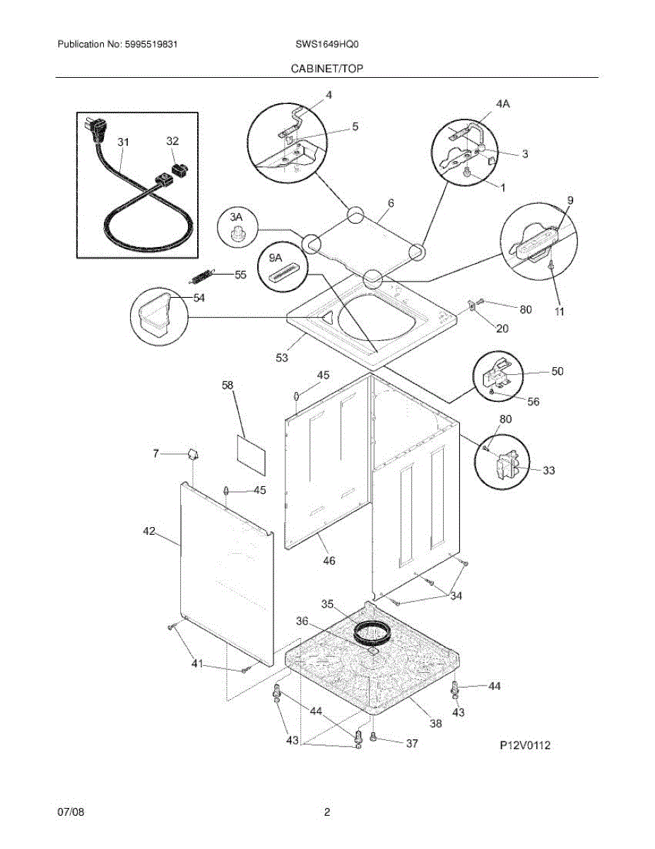 Protects the power cord where it passes through the washer cabinet. Replace if cracked, worn, or missing to prevent cord chafing and wire exposure.