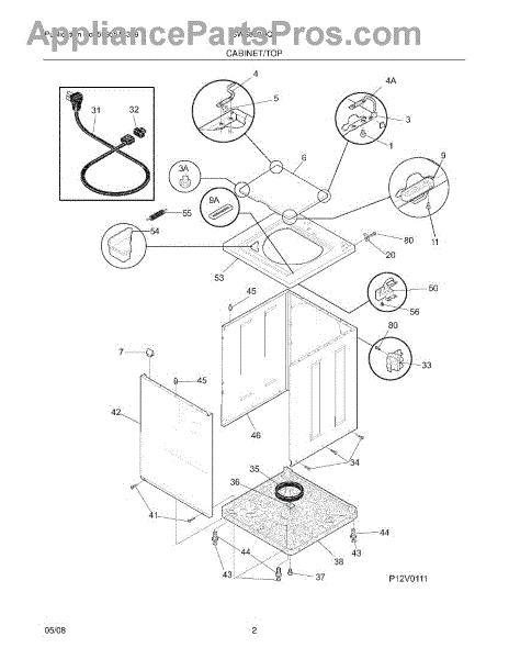 Protects the power cord where it passes through the washer cabinet. Replace if cracked, worn, or missing to prevent cord chafing and wire exposure.